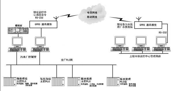某污水處理廠自控系統(tǒng)網(wǎng)絡(luò)結(jié)構(gòu)圖: